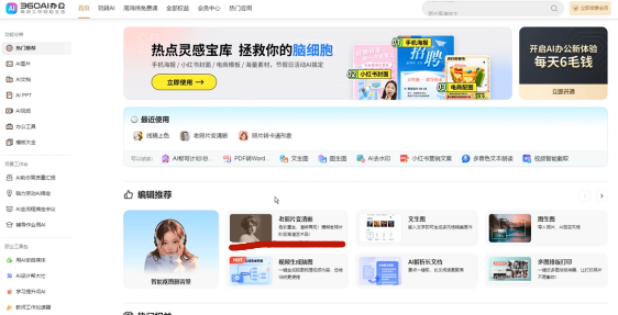 360AI办公需要会员权限,可灵AI和即梦AI提供有限的免费次数。一开始没有盈利时,可以先利用这些网站的免费额度。