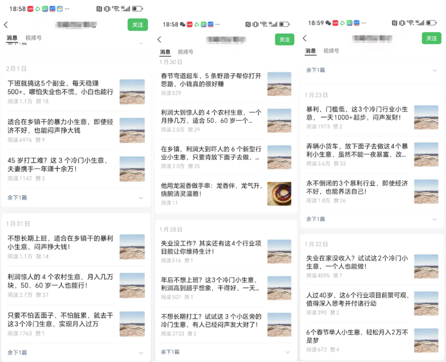 如果你的公众号今天做职场,明天做读书,过几天又写农村小生意,频繁切换领域会导致文章难以爆发。专注于某一个领域,可以让账号积累更强的粉丝基础,提升推流效果。