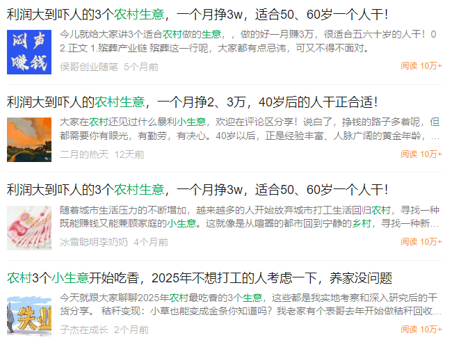 不知道有多少朋友看过《致富经》(CCTV7一个讲述农村创业的节目),我小时候每期都会看。那时我还不到十多岁,看这个节目并不是因为想创业,而纯粹是为了娱乐。今天我要分享的这个方法,和《致富经》的理念异曲同工。我们将利用DeepSeek写关于农村小生意的文章,并通过做公众号流量主来赚取稳定收益。