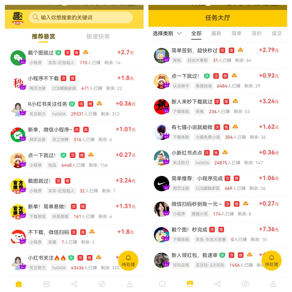 建议你从简单的任务开始做,这些任务一般包括关注某个公众号、下载某个应用或者体验某个小程序等。