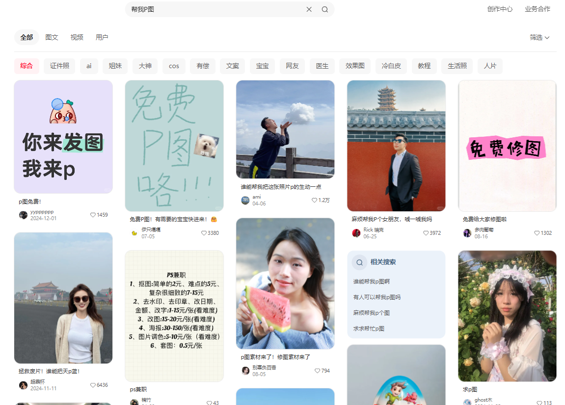 1. 从小红书来的客户,大部分都是有P图需求的,可以帮他们P图,价格从29.9-299不等,主要就是根据自己的P图能力已经客户的消费能力来收费,新手建议从20-50的价格区间开始。