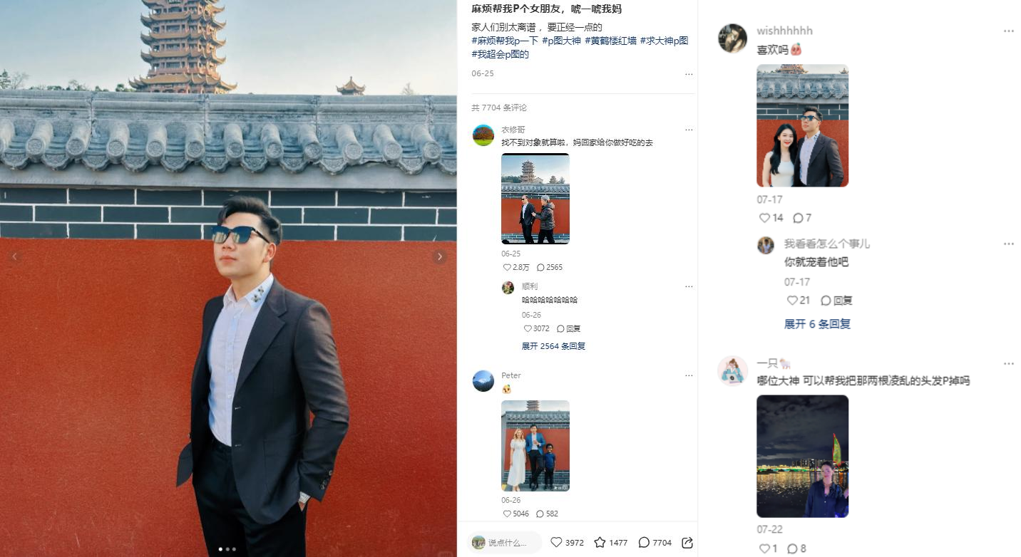 可以看到很多P图的帖子,打开这些图文,我们可以看到很多热心网友,帮忙P了很多图片,这里面有正经的,有搞笑的。